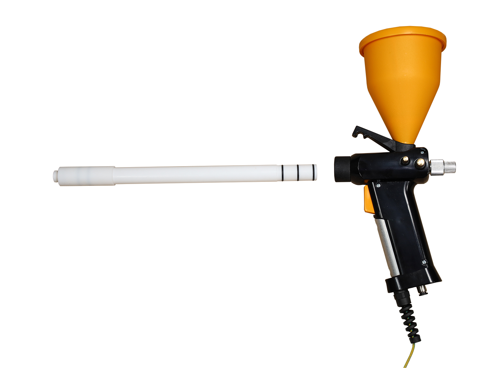 Заряжающий ствол изготовлен из высококачественных материалов, дающих максимальный заряд порошка, что критично снижает расход порошковой краски по сравнении с обычными распылителями. Отсутствие резьбового соединения ствола с рукояткой в разы повышает скорость очистки распылителя и повышает надежность элементов ствола. Вам больше не надо постоянно вкручивать-выкручивать длинные резьбовые соединения.